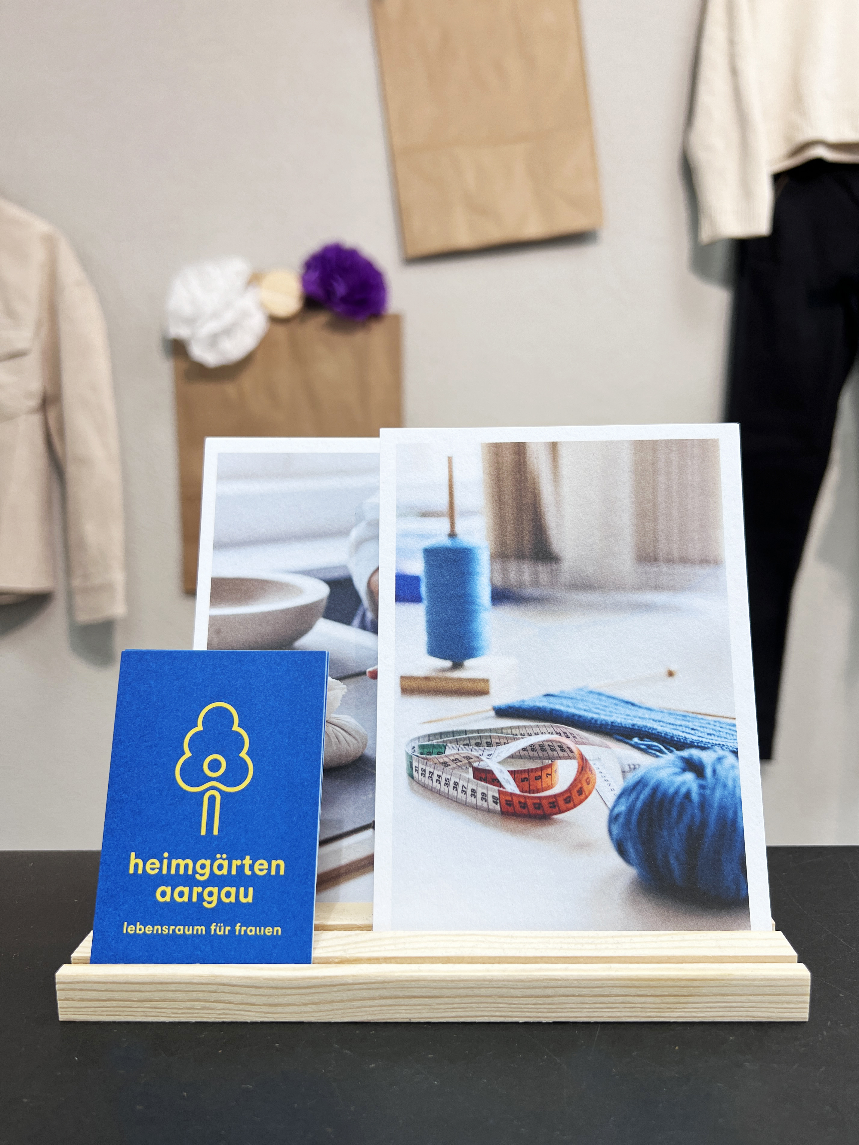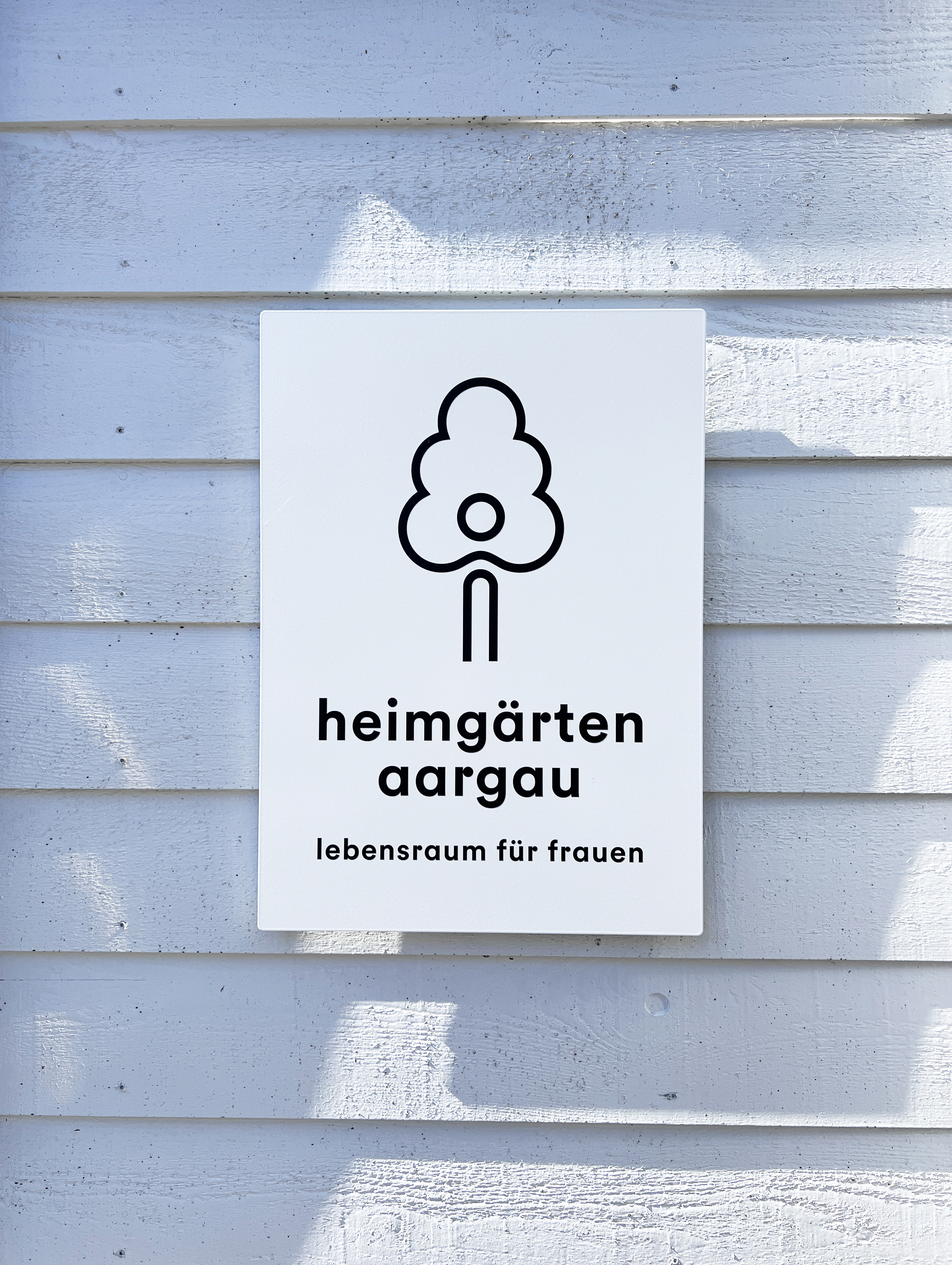 Das Logo repräsentiert den Auftrag der Stiftung Heimgärten Aargau: eine gesunde, vertrauensvolle Umgebung schaffen, welche es den Frauen ermöglicht, sich entsprechend ihren Ressourcen zu entwickeln und ihre eigenen Kräfte zu mobilisieren. Der Claim «Lebensraum für Frauen» beschreibt das Alleinstellungsmerkmal der Stiftung Heimgärten Aargau.